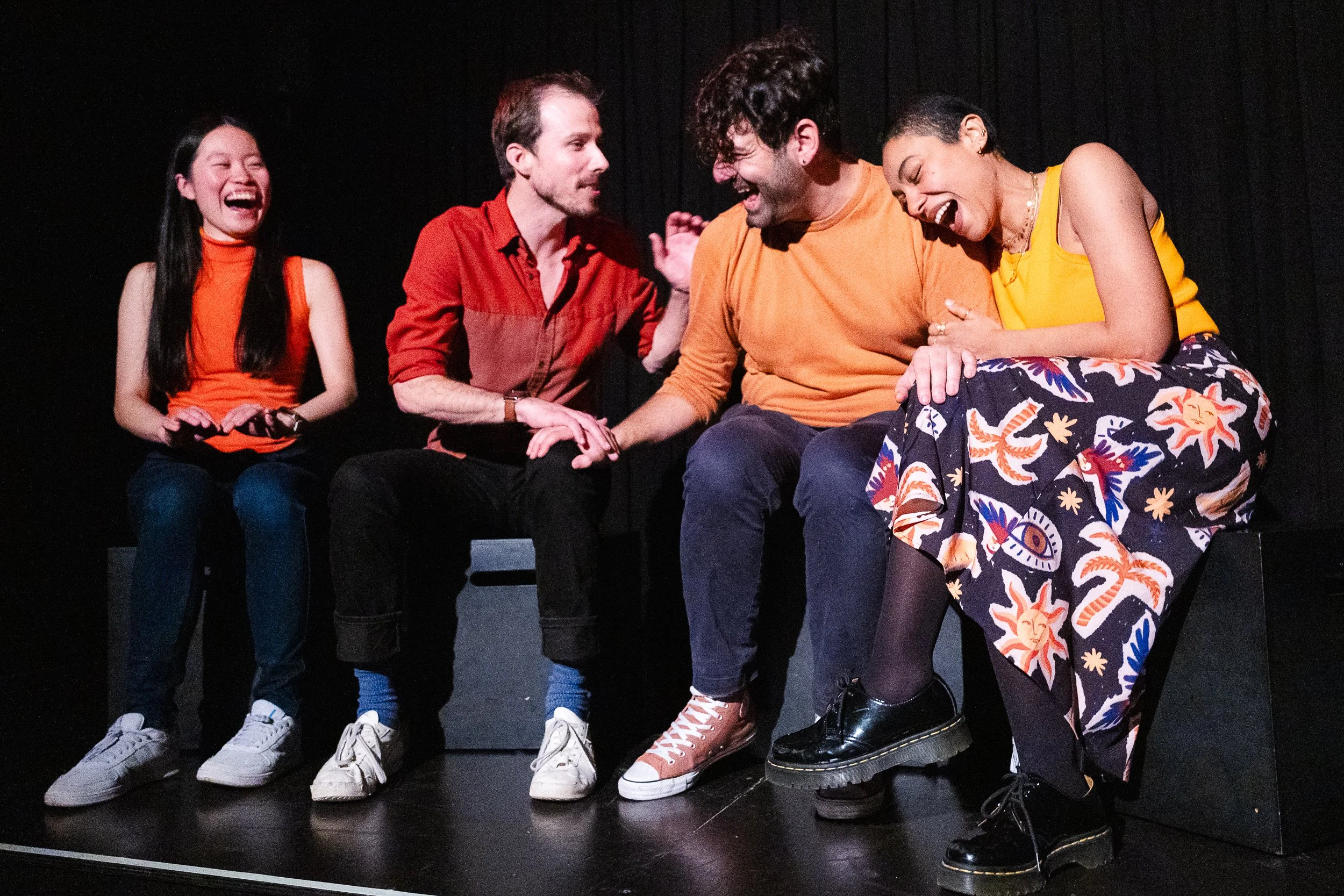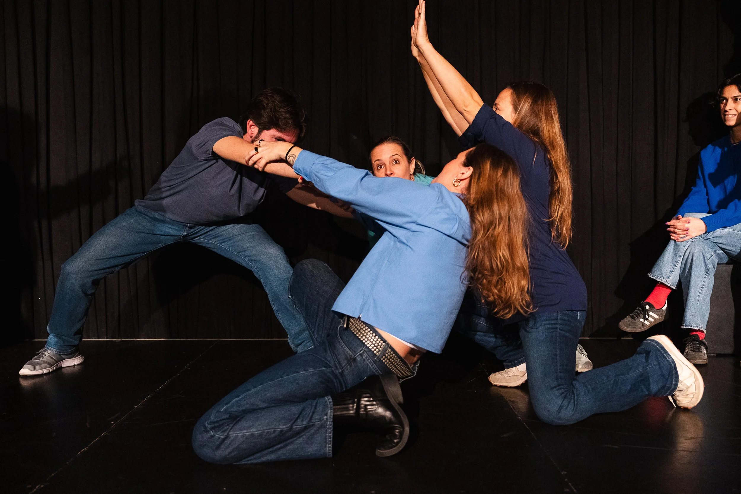 Welcome to Intro to Longform! This course equips you to craft scenes organically, without pre-set structures. Draw inspiration from diverse sources and weave complete scenes from scratch. Enter 'The Living Room,' a classic improv format driven by real player conversations inspiring scenes. Dig deep, creating scenes with lasting impact beyond a couple of minutes. Your team becomes your safety net, offering support as you navigate the stage without an MC. In the driver's seat during performances, students take control, steering the show with their newfound skills.